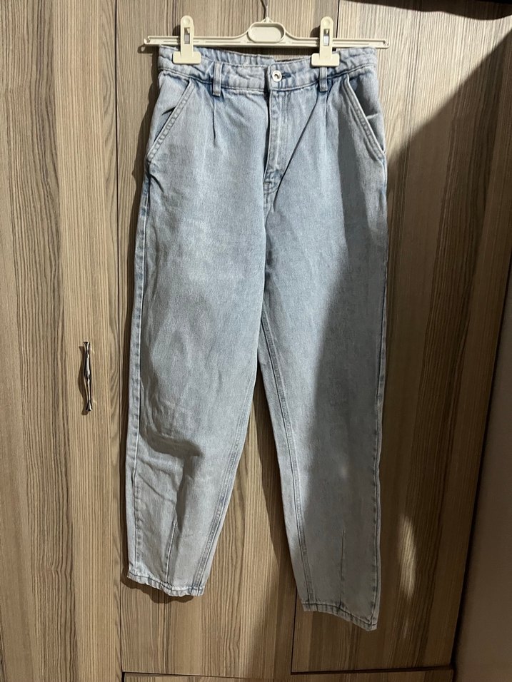 Pastel mavi renkte, rahat kesim midi boy kadın denim pantolon. Günlük kullanıma uygun, sokak modası tarzında, zahmetsiz şıklık sunar.