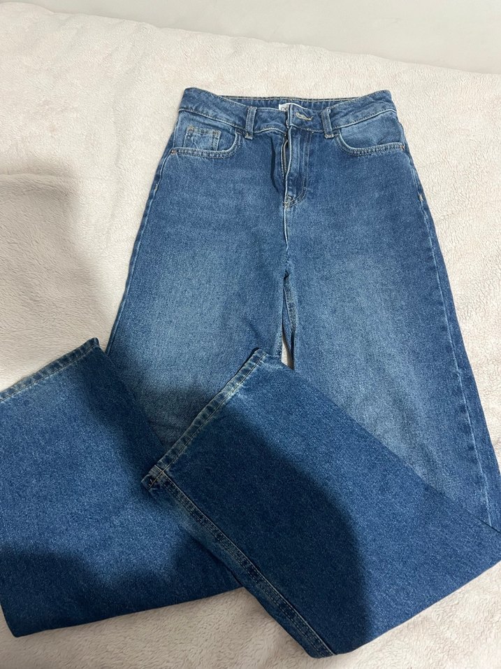 Mavi renkte, rahat kesim ve midi boy kadın kot pantolon. Günlük kullanıma uygun, zahmetsiz şıklık sunar.