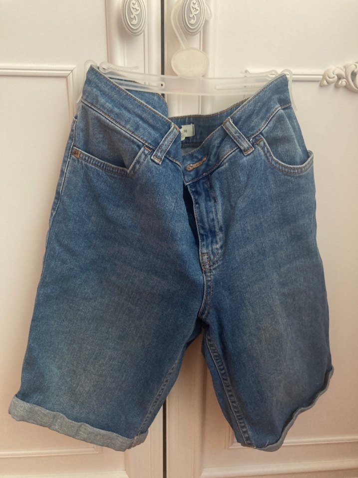 Mavi renkte, , rahat kesim midi kot şort. Günlük kullanım ve sokak stiline uygun, desensiz ve normal boyda.