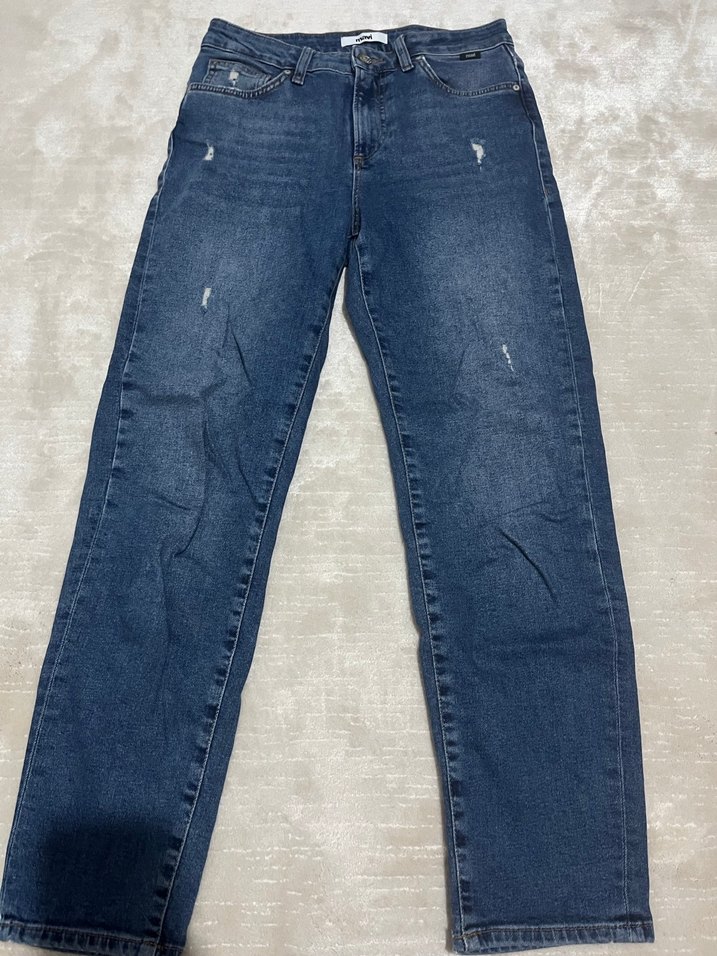 Mavi-gri renkte, regular fit ve normal boyda denim pantolon. Günlük kullanıma uygun, sade ve zahmetsiz şıklık sunar.