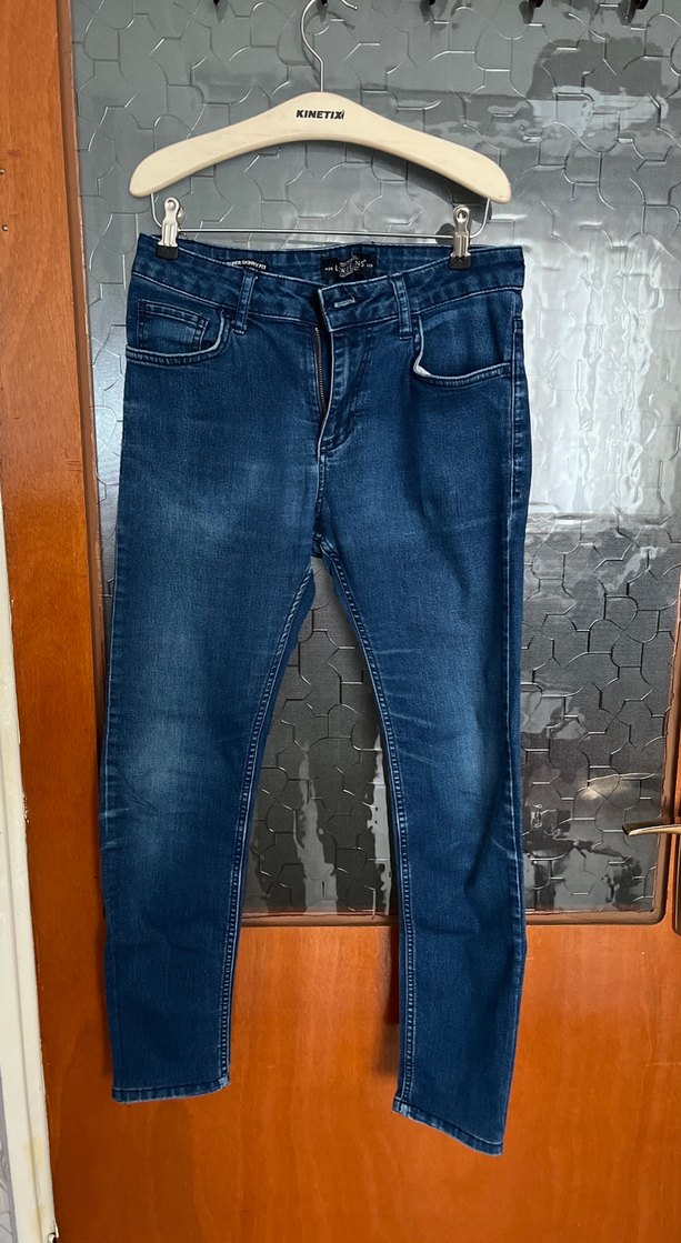 Kadınlar için regular fit, midi boy mavi denim pantolon. Tokalı detaylı, desen içermeyen rahat ve günlük sokak stili için uygun pantolon.