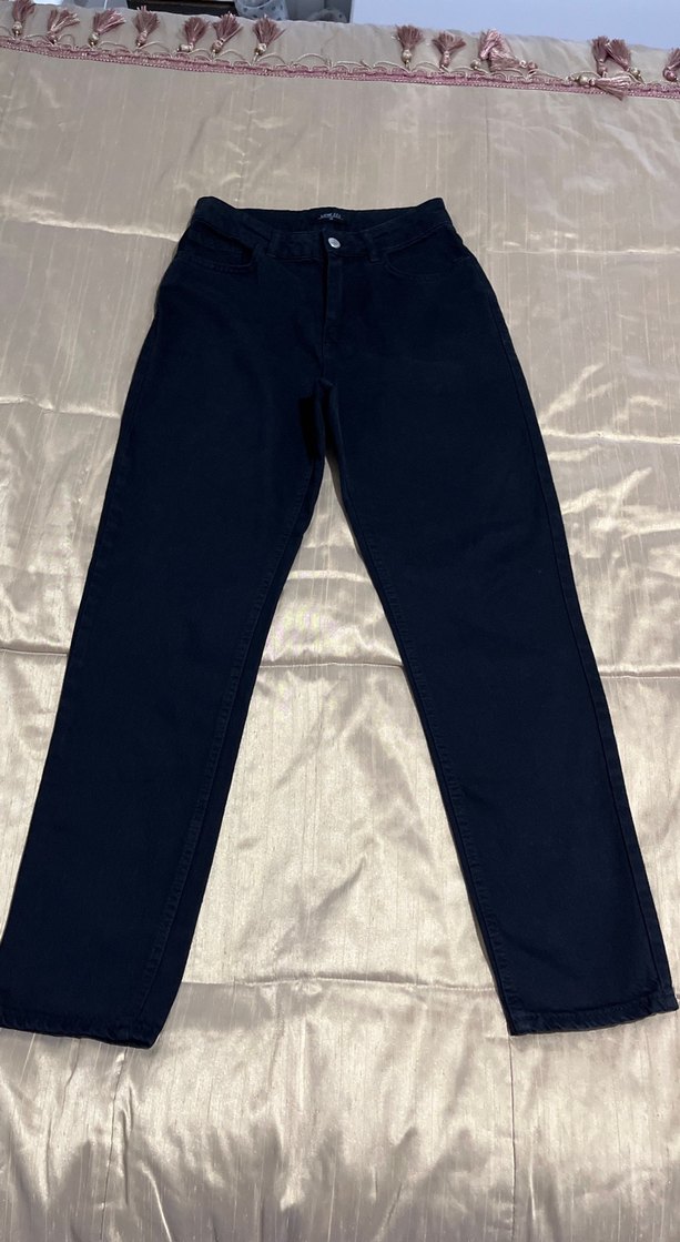 Kadın için regular fit ve normal boyda, koyu lacivert denimden yapılmış bu pantolon, sade ve minimalist tarzıyla günlük kullanıma uygundur.