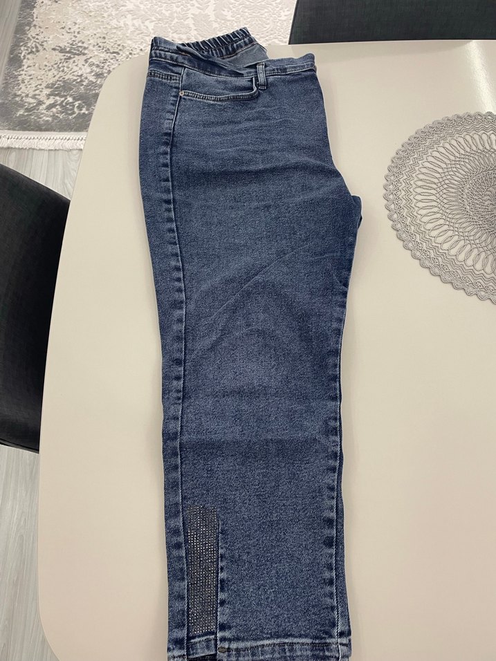 Mavi denimden yapılmış, regular fit ve normal boyda kadın pantolonu. Paça kısmında fermuarlı detay bulunur. Günlük ve sokak tarzına uygundur.