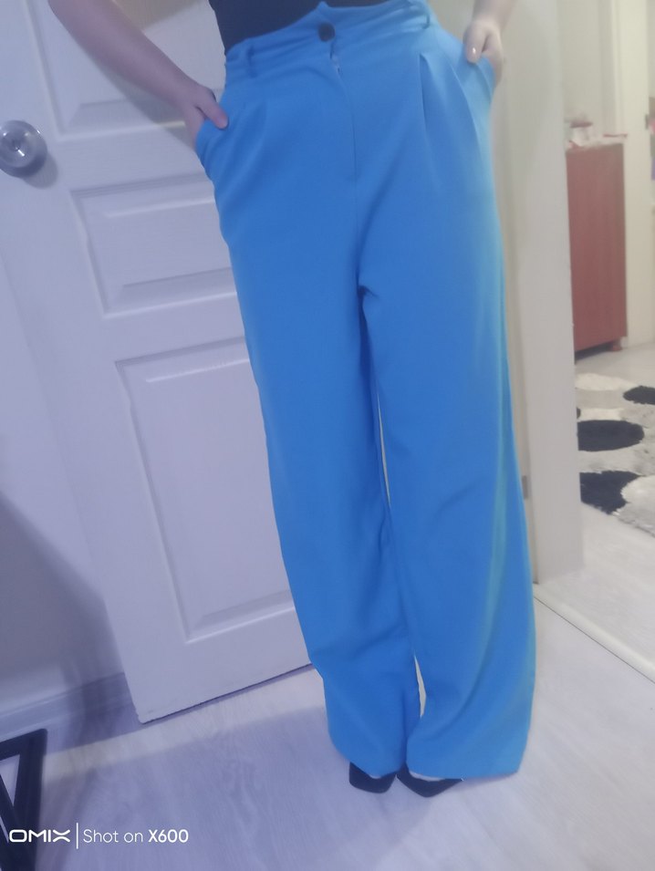 Kadın mavi, regular fit, midi boy kumaş pantolon. Yumuşak ve sıcak kumaştan, düz desensiz, günlük rahat kullanım için uygun. Zahmetsiz şıklık sunar.