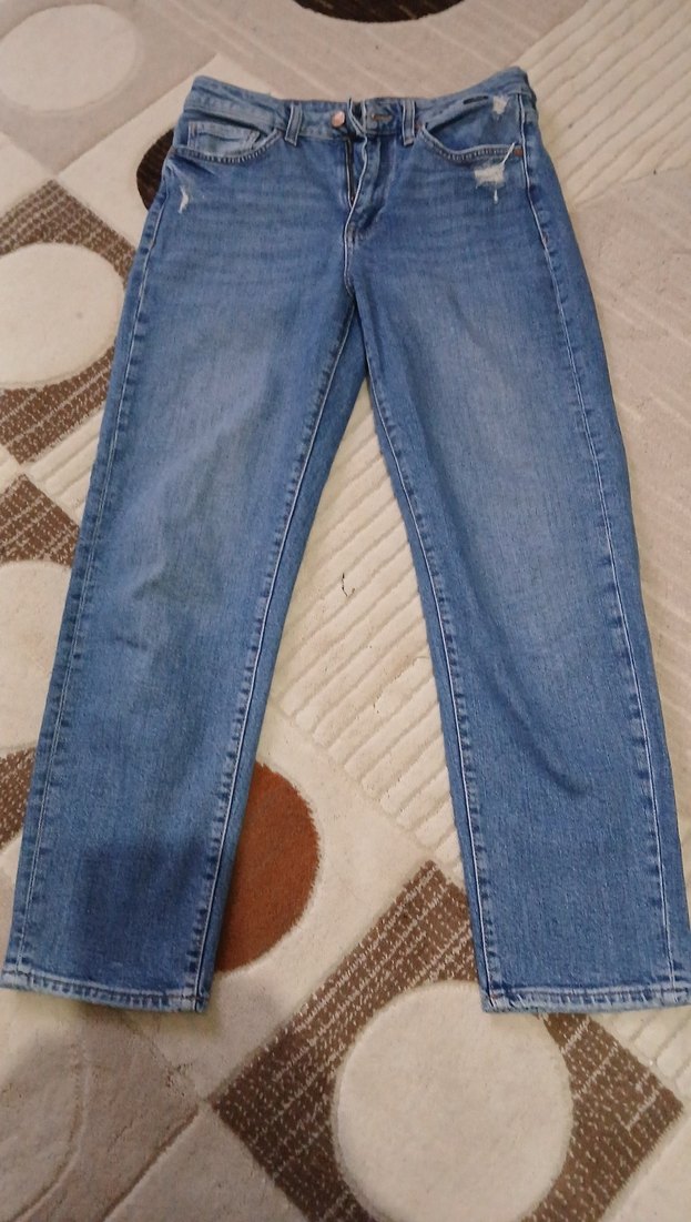 Kadınlar için regular fit kot pantolon, denim kumaştan ve tokalı detaylıdır. Normal midi boyda, desen içermeyen mavi renkte günlük kullanıma uygundur.