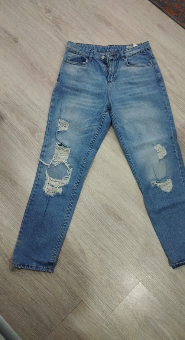 Kadın mavi renk normal Kesim Yırtık Jean