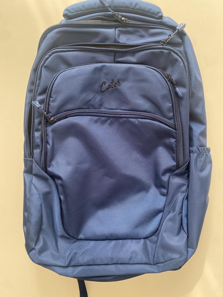 Kadınlar için çok bölmeli fermuarlı, dayanıklı sentetik kumaştan yapılmış sade mavi ve gri sırt çantası. Günlük kullanım ve sokak stili için uygundur.