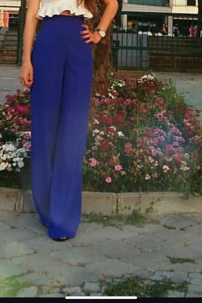 Dilvin marka koyu mavi, salaş kesim, dökümlü tasarıma sahip, yumuşak kumaştan yapılmış pantolon. Düğün ve günlük sokak stili için uygundur. Belden penslidir. 34-36 beden