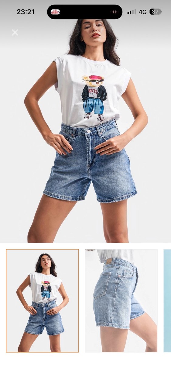 Bu açık mavi kot şortlar, kemerli bel ve hafif batik desen ile salaş bir kesime sahiptir, günlük sokak stili için uygundur. Sezonda sadece 4 kez giyildi hiçbir sorun yok . Mankedeki kadar kısa durmuyor