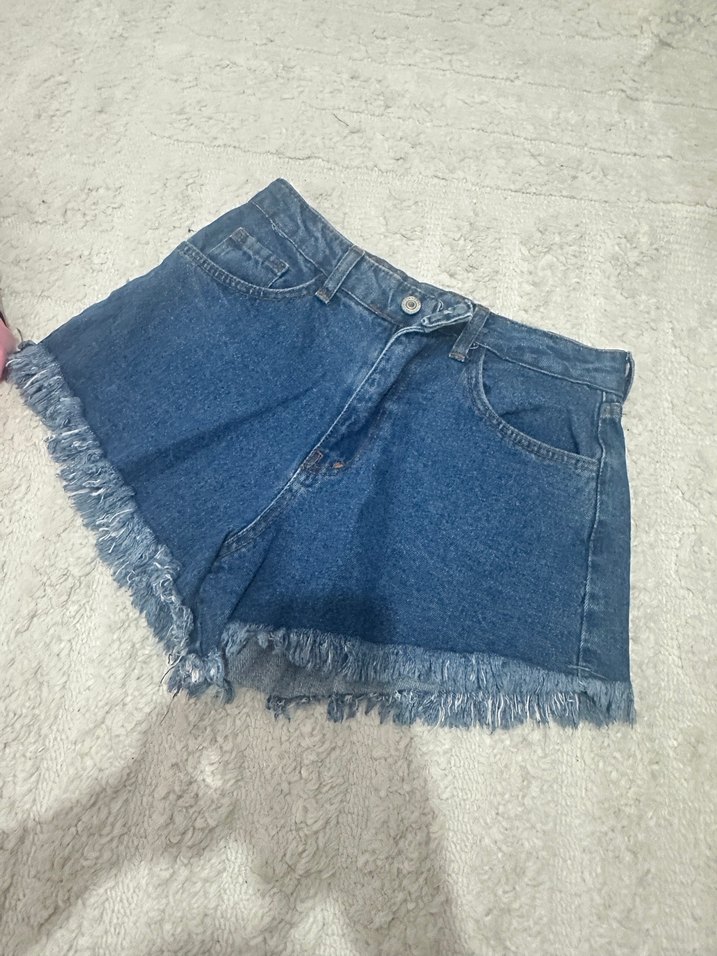 Kadınlar için mavi renkli, salaş kesim ve püsküllü kenarlara sahip denim mini şort. Günlük kullanıma uygun, sokak modasına uyumlu rahat stil sunar.