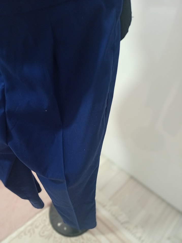 Kadın Mavi Saten Dökümlü Kumaş Pantolon