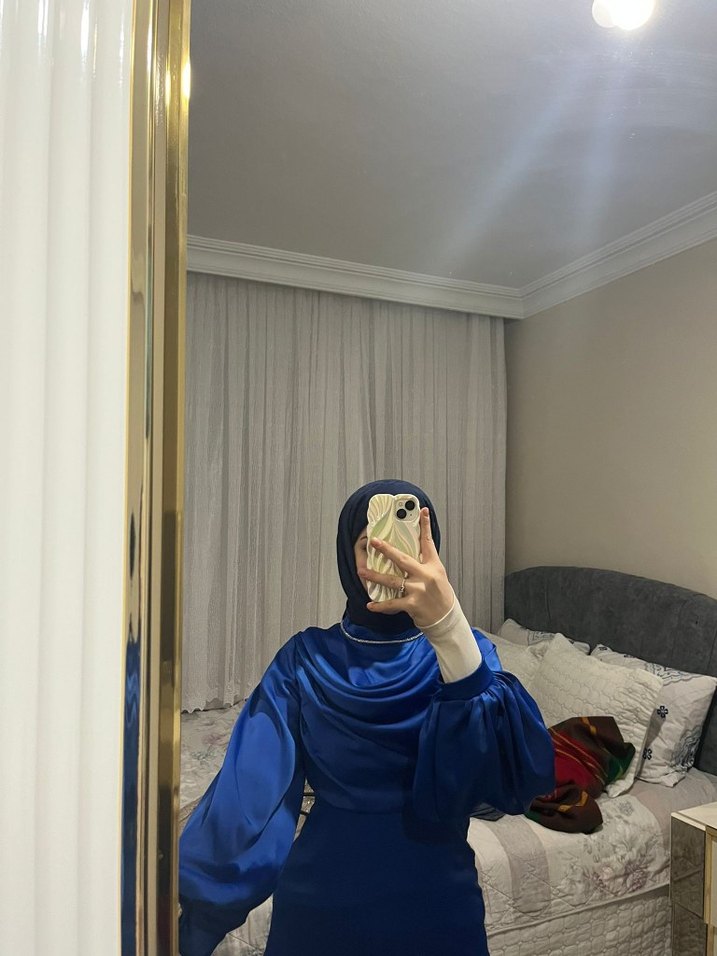 Koyu mavi, saten dokulu, salaş drapeli kadın şalı. Minimalist sokak stiline uygun, zarif ve rahat kullanım sağlar.