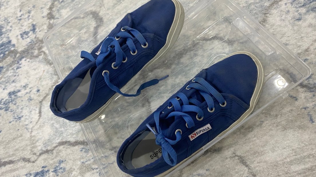 Parlak mavi renkte, platform topuklu ve fırfırlı detaylı kadın spor ayakkabısı. Kauçuk malzemeden, sportif sokak giyimine uygun. Marka: Superga. 40 numara