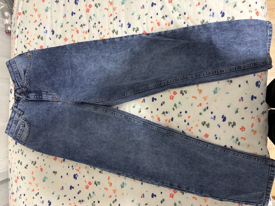 Pastel mavi tie-dye desenli, normal boy midi denim jean. Velcro detaylı, rahat kesim, günlük sokak stili için uygundur.