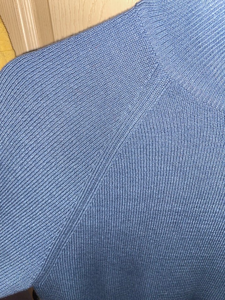 Kadınlar için mavi-gri tonlarda, balıkçı yaka ve triko dokulu, denim kumaştan yapılmış, vücuda oturan kazak. Outdoor kullanım için uygundur.