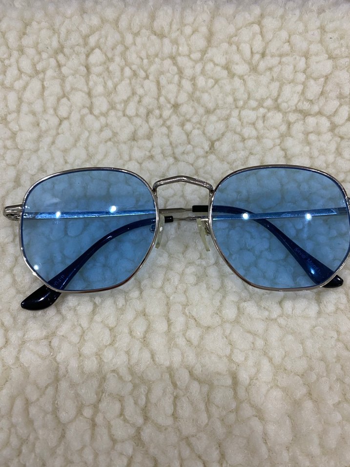 Kadınlar için parlak mavi camlı, tüylü detaylı çerçeveli bohem ve retro tarzda gözlükler. ️