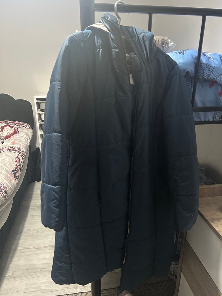 Kadın mavi Uzun Fermuarlı Kışlık mont