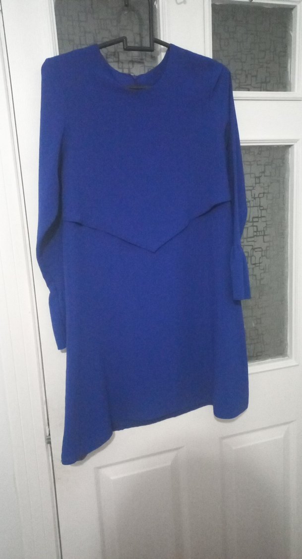 Kadınlar için koyu mavi renkte, uzun kollu ve yuvarlak yakalı, drapeli midi uzunlukta rahat kesim tunik. Yumuşak ve sıcak kumaştan üretilmiştir. pazarlık payı vardir