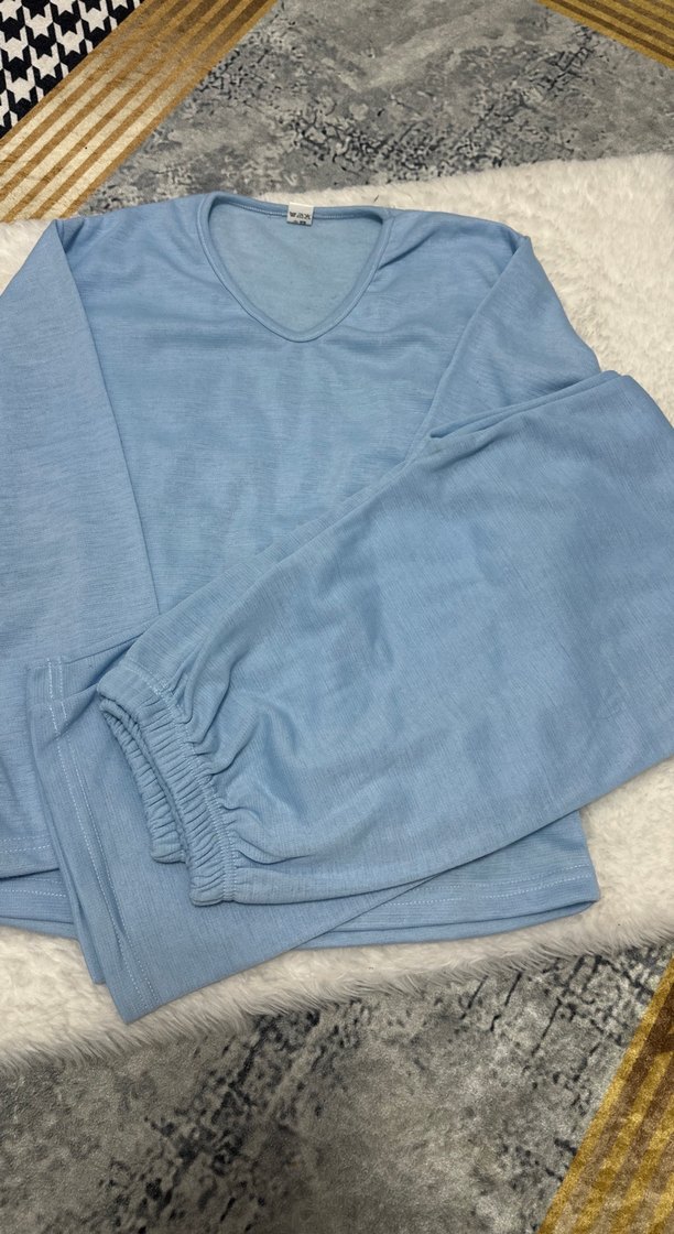Açık mavi renkte, uzun kollu ve yuvarlak yakalı kadın pijama takımı. Rahat ve bol kesimiyle konforlu kullanım sağlar. Düz desensiz, sade şıklık sunar. Ürün hiç kullanılmadı sıfırdır bebe mavisi çok ince deil orta kalınlıkta