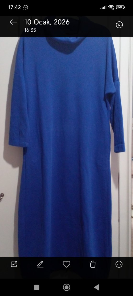 Kadınlar için uzun kollu, salaş kesim, yuvarlak yakalı elbise. Yumuşak ve sıcak kumaştan, koyu mavi renkte, sade ve minimalist tasarıma sahip. Marka temsilidir.iki kol arası 51 cm. bel 49 cm.boy 124 cm.