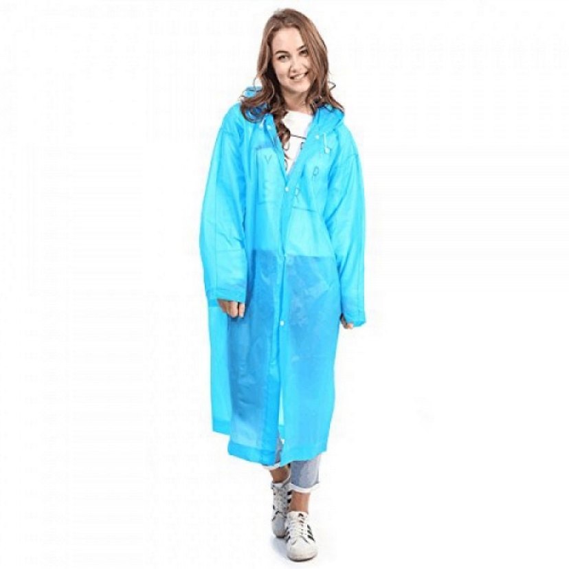 Kadın Mavi Uzun Rahat Yağmurluk