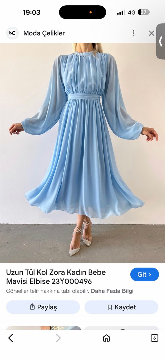Kolları tül şifon elbise midi boy ürün fotoğrafta görüldüğü gibi