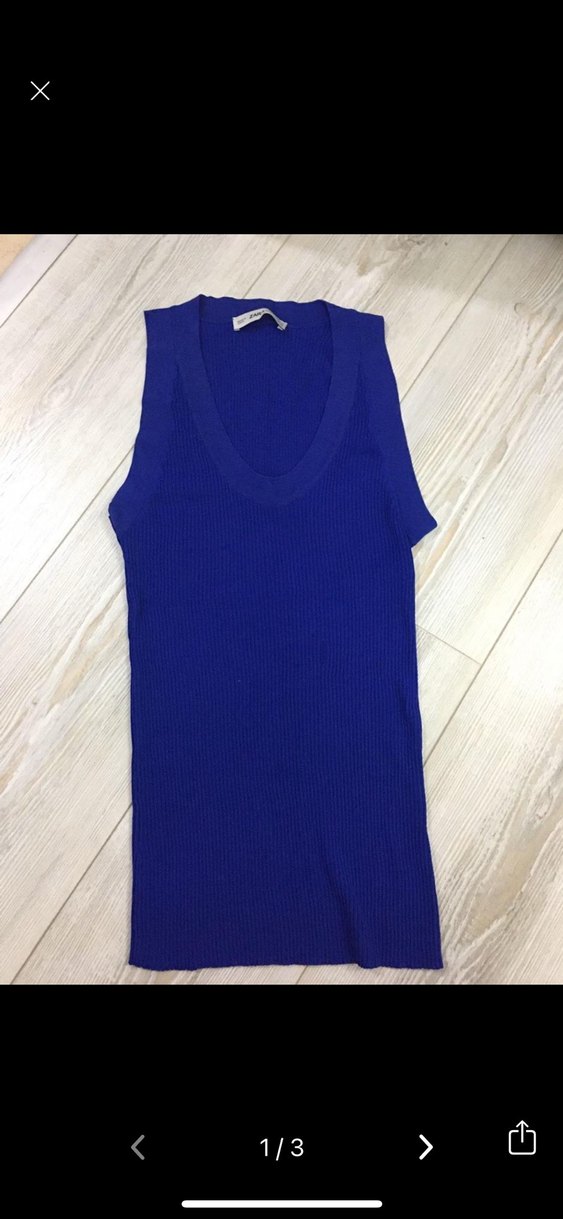 Koyu mavi renkte, V yaka ve kolsuz, triko kumaştan yapılmış, normal midi uzunluğunda, sade ve şık bir atlet. Günlük ve sokak stiline uygundur.