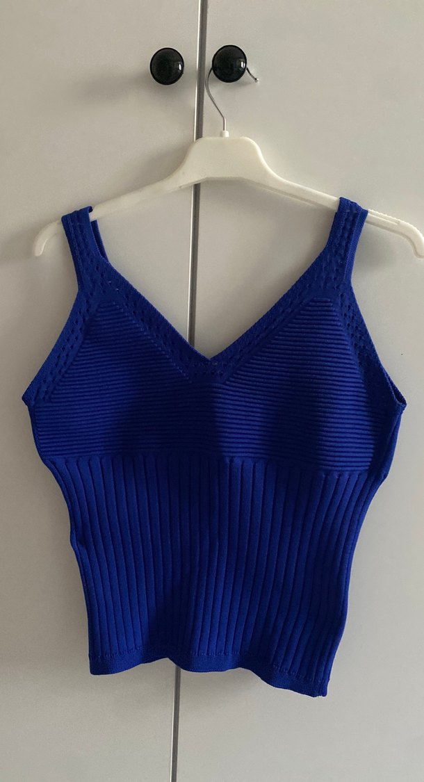 Kadın Mavi V Yaka Triko bluz