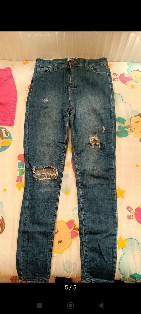 Yırtık detaylı, dar kesim, mavi kot pantolon. Normal midi boyda, tokalı ve günlük rahat kullanıma uygun sokak stili tarzında. 38 beden kumaşı yumuşak resimdeki gibi sorunsuz