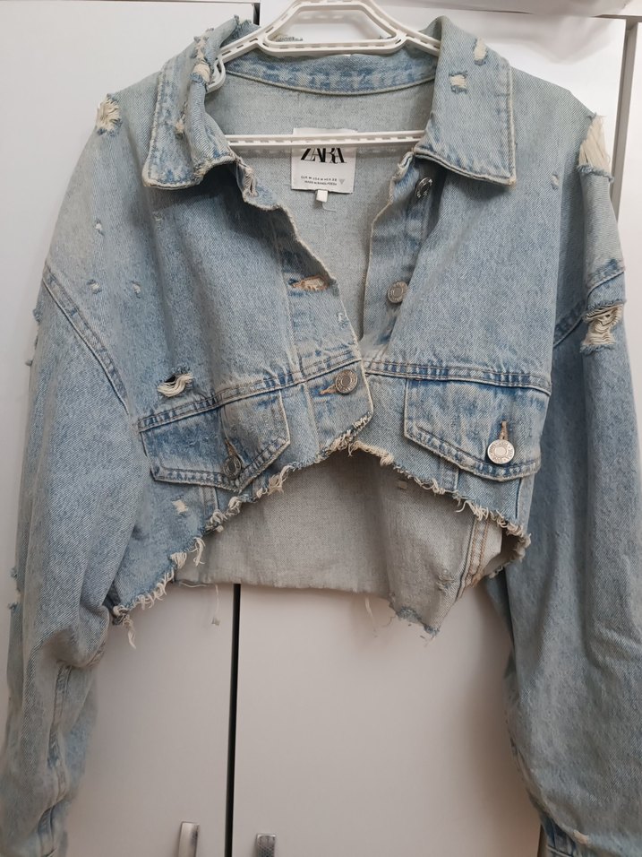 Kadın Mavi Yırtık Denim Ceket
