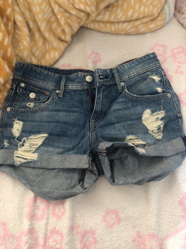 Açık mavi renkli, bol kesim, yırtık detaylı kadın denim mini şort. Günlük kullanıma uygun, kemerli tarzda.