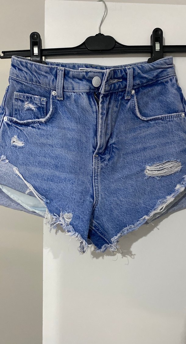 Kadınlar için bol kesim mavi denim mini şort, yırtık detaylı ve kemerli, günlük kullanıma uygun hafif batik desenli. Bedeni olmadığı için satıyorum bir kusuru bulunmuyor. Bir kez giyilmiştir.