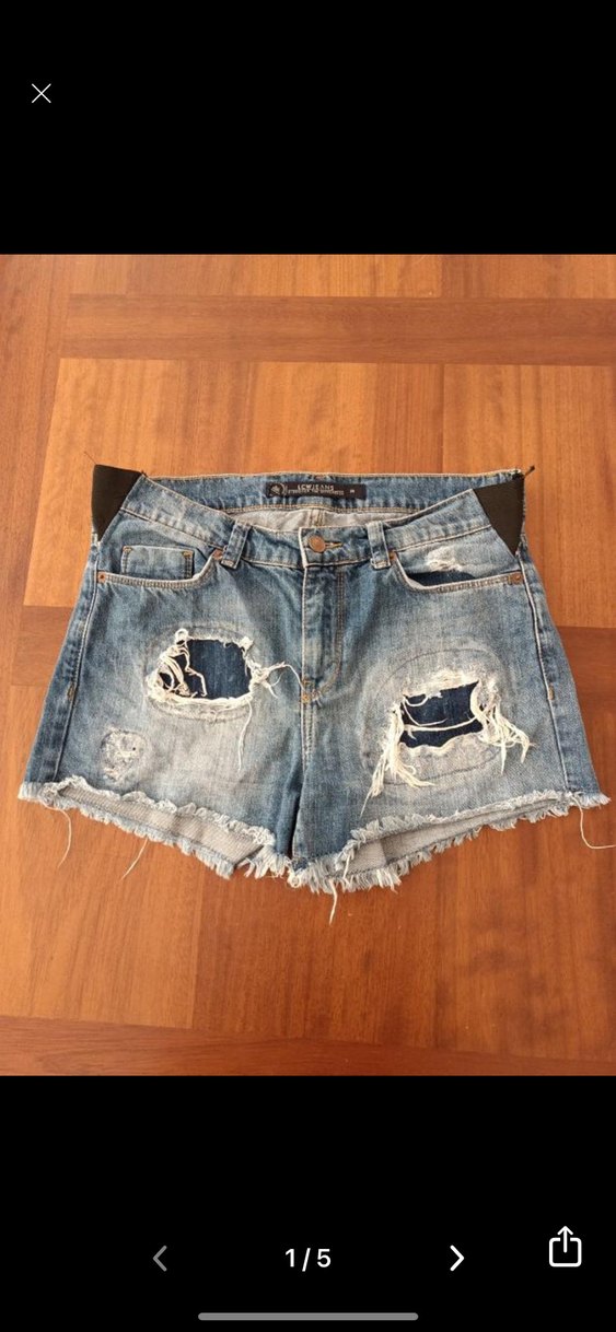 Bol kesim, yırtık detaylı ve kalça kısmında tokalı mavi kot şort. Kısa boylu ve püsküllü kenarlarıyla trend bir günlük tarz sağlar.