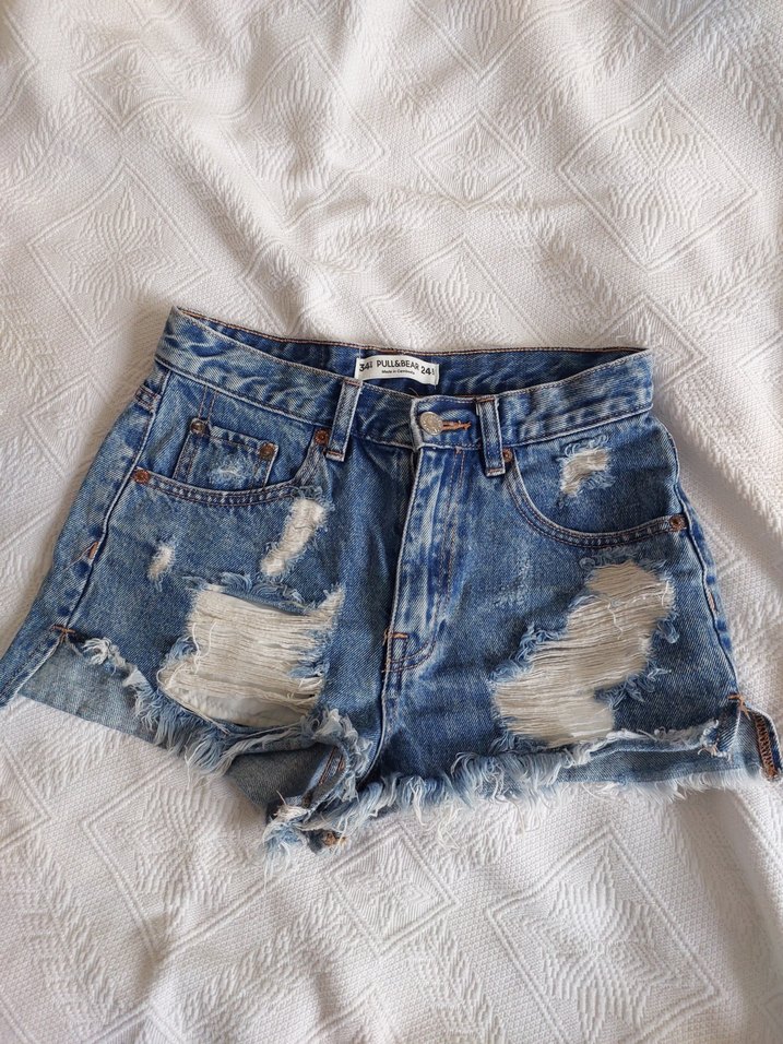 Kadın Mavi Yırtık Kot Şort Mini Boy