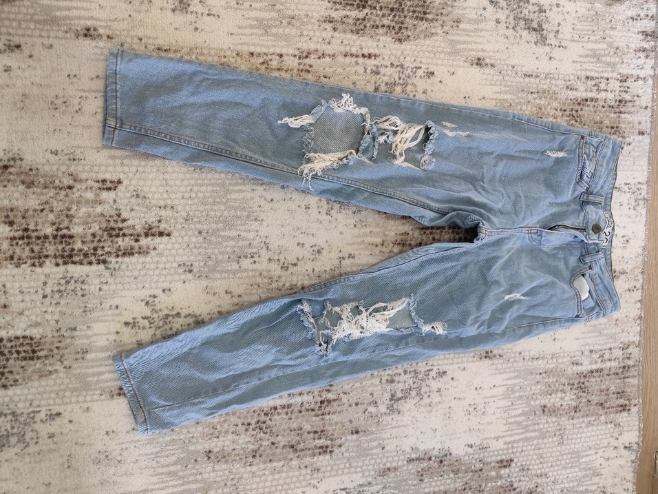 Salaş kesim, yırtık detaylı mavi kadın denim jean. Tokalı tasarımıyla trend sokak stili sunar. Günlük kullanıma uygundur.