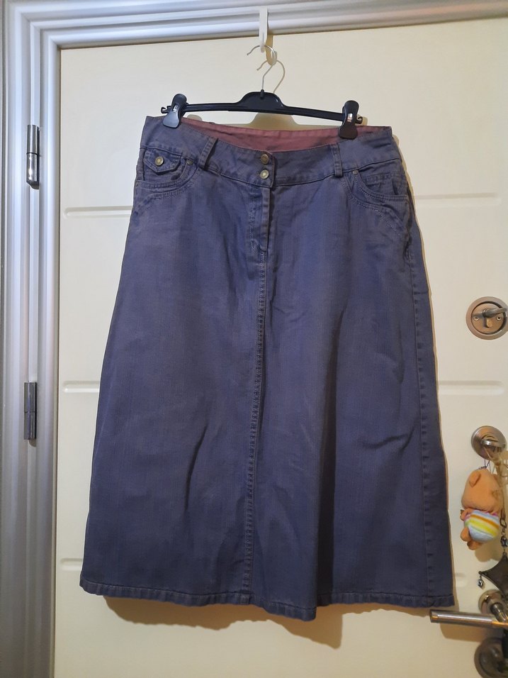 Bu lacivert midi etek, bol kesim ve kemerli bel detayıyla kot kumaştan yapılmıştır. Günlük kullanıma uygun sade ve deseniz bir tasarıma sahiptir. Büyük Beden taşlanmış etek. Uuznluk 83 cm.