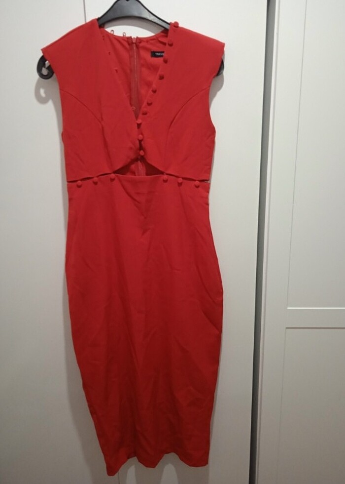 Ürün az kullanılmıştır ve hiçbir sorunu yoktur. 38 beden kırmızı renkte. Arkadan yırtmaçlı ve göbek dekolteli. Düğmeleri lastiklidir kolayca giyilir arkadan ise fermuarlıdır. İyi alışverişler