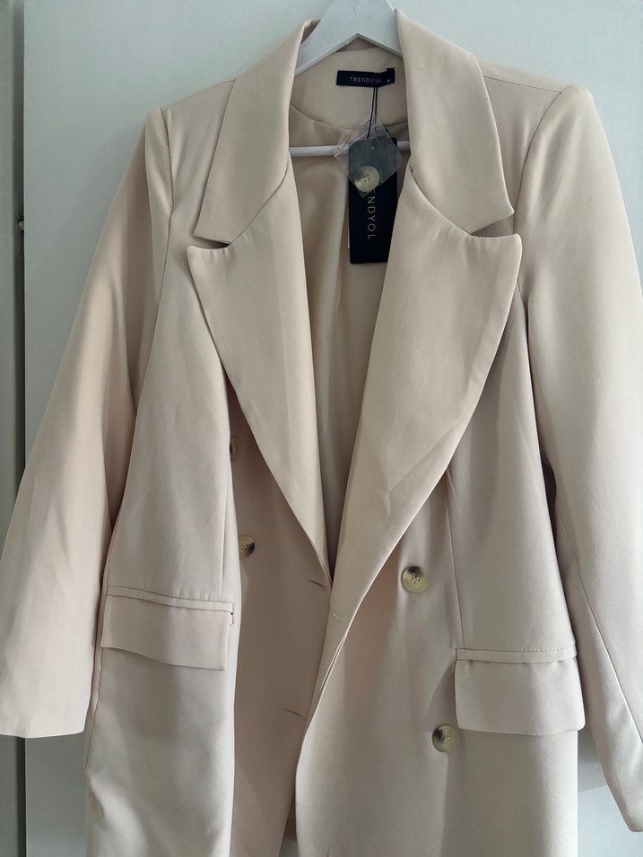 Midi ceket, düğmeli ve kesimli yaka detaylıdır.Uzun kollu, klasik modern ofis stiline ve günlük kullanıma uygundur. Trendyoldan alınmıştır hiç kullanılmamıştır etiketi üzerindedir.