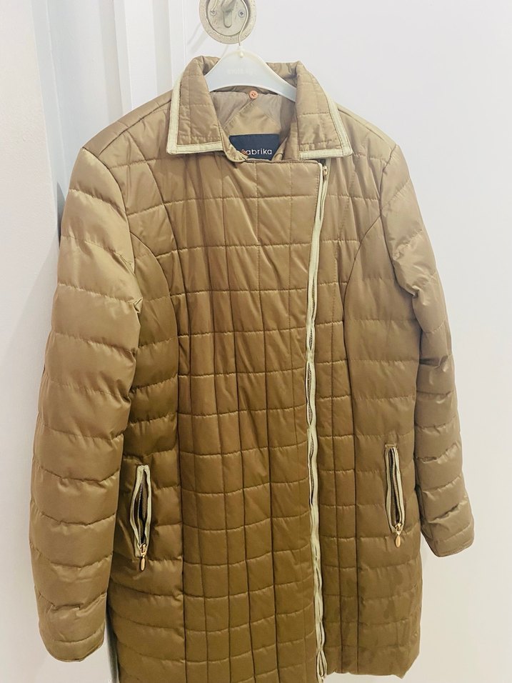 Kahve renkli, fermuarlı ve uzun kollu kadın ceketi, çıt detaylı yaka ve normal kesime sahiptir. Parlak yüzeyi ve rahat dokusu gündelik kullanım için uygundur. Cep fermuarlı kısmında çok az sökük vardır yapılabilir resimde belirttim başka bir sorun yoktur