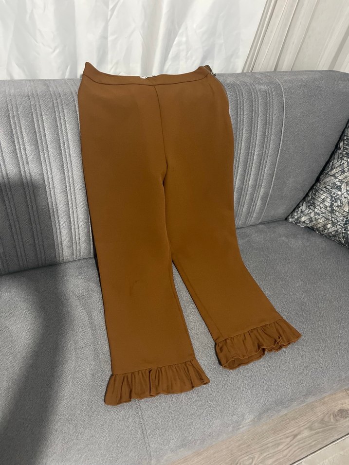 Kadın Midi Kumaş Fırfırlı Pantolon