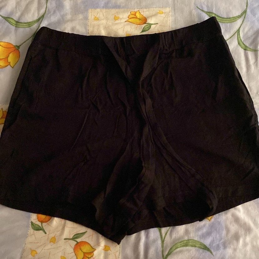 Kahverengi, drapeli, bol kesim kadın midi şort. Yumuşak ve parlak dokusu ile gotik tarzda romantik akşamlar için uygun.
