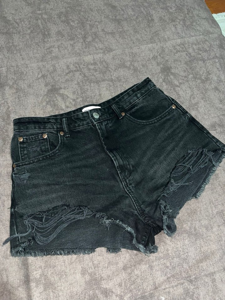 mini denim şort, salaş sokak tarzı için uygun. Kenarları kesik ve kullanışlıdır.