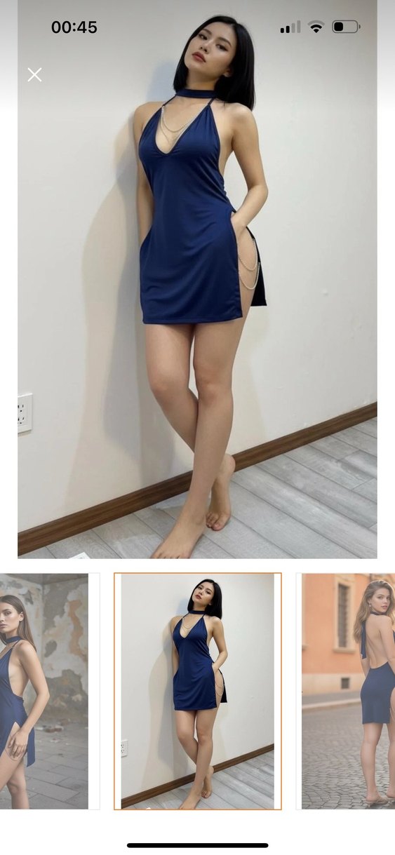 Lacivert mini elbise, V yaka ve ince askılı, ipeksi kumaştan. Minimalist tarzıyla romantik akşamlar için zahmetsiz şıklık sunar.