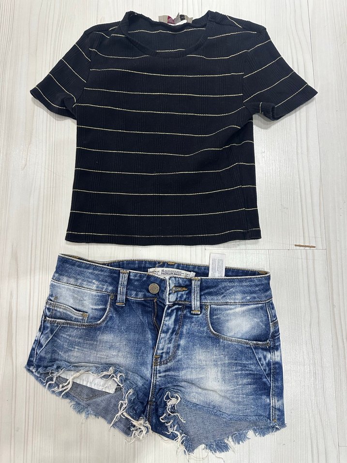 Kadın Mini Mavi Denim Şort ve badi 2 li takım