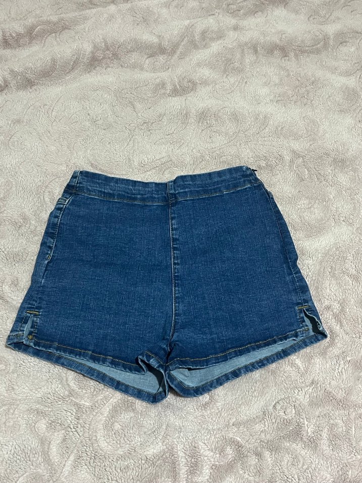 Fermuarlı yan detaylara sahip, mini boy kadın mavi denim şort. Sade ve sokak modasına uygun, günlük kullanıma uygun rahat şort.