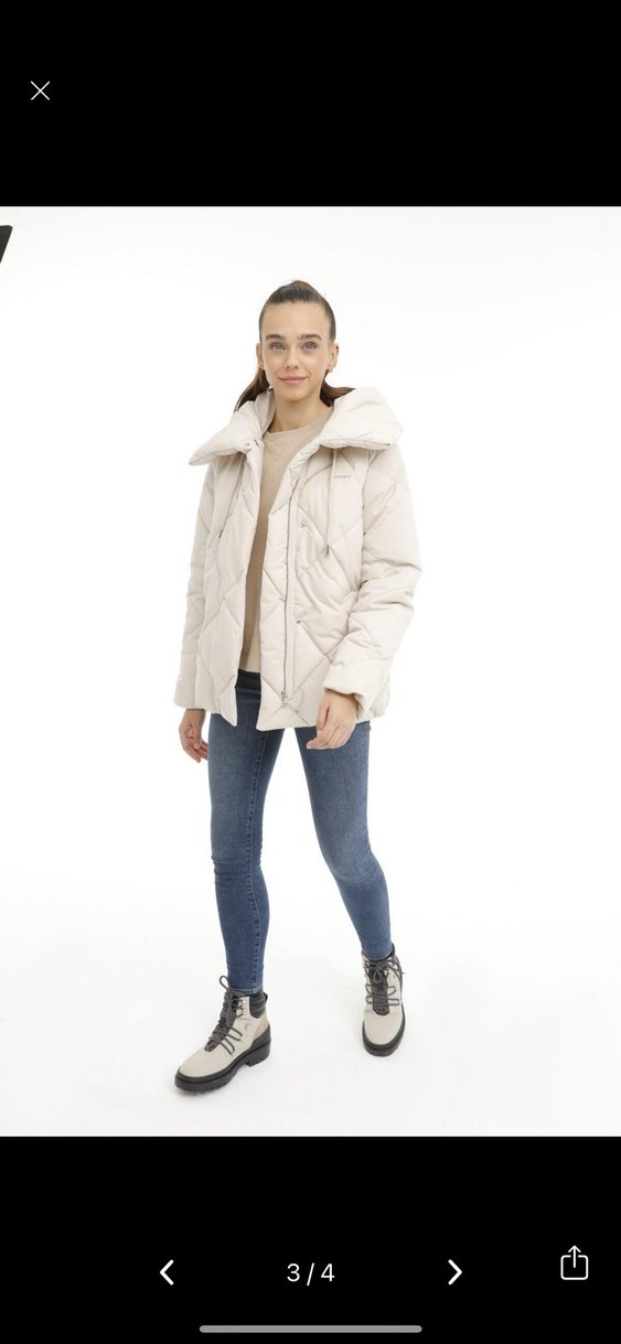 Bej renkte, yüksek yakalı ve uzun kollu şişme mini kadın kışlık mont. Bol kesimi ve yumuşak, sıcak kumaşıyla günlük sokak stili için uygundur. ️