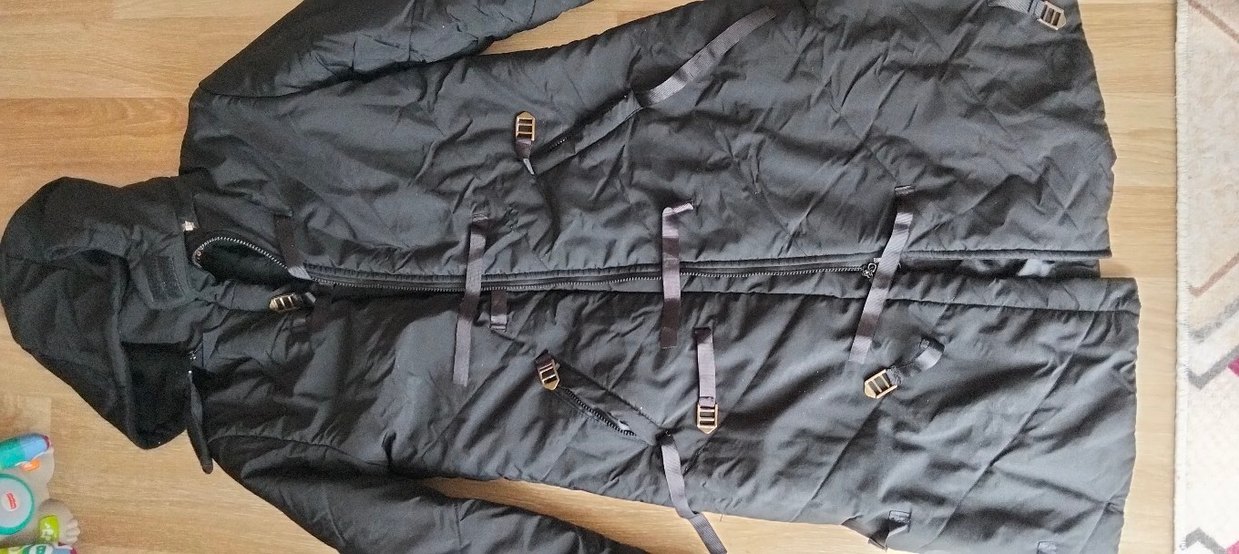 Ayarlanabilir tokalara sahip uzun şişme mont
