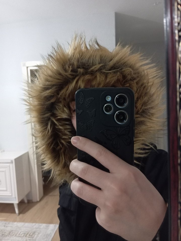 İçi polar kaplamalı. Dışı polyester. Düğmeli çıkarılabilir kapşon. Fermuarı ve düşmesinde bir sıkıntı yok. Bel kısmında lastik mevcuttur.