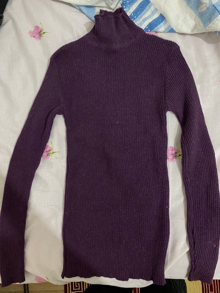 Fitted kesim, mor renkli balıkçı yaka ve uzun kollu triko kazak. Normal boyda, desen içermeyen rahat bir tasarıma sahiptir.