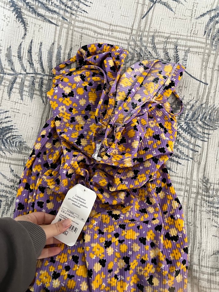 Kadın Mor Çiçekli Uzun Kollu Elbise